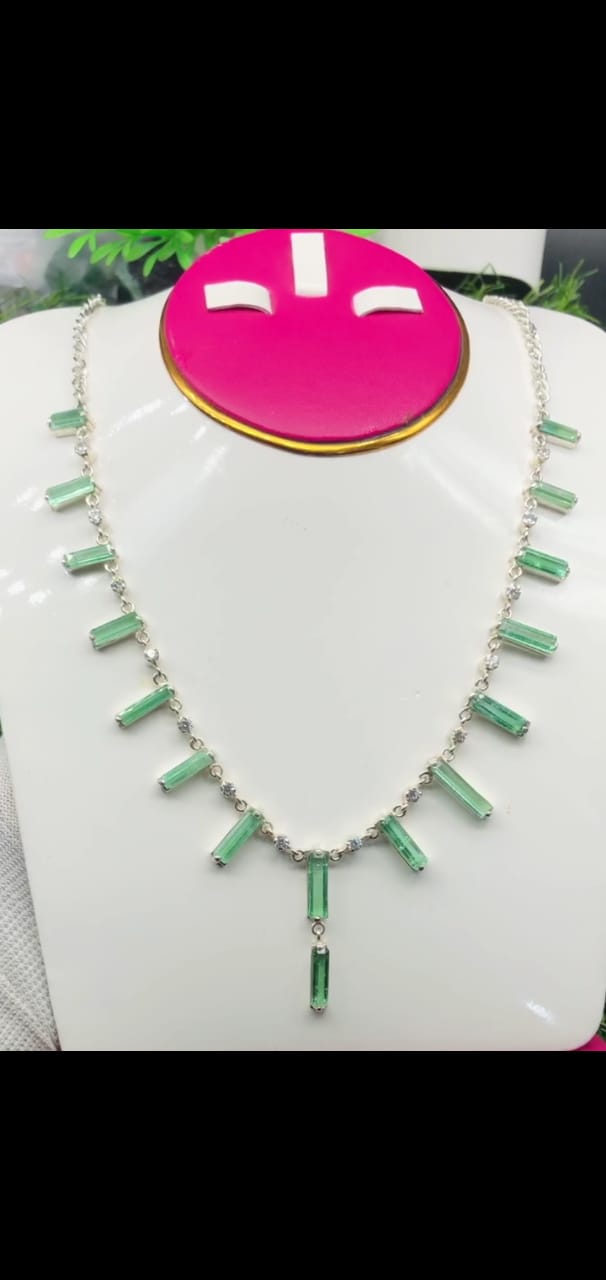 This Natural Tourmaline Silver Necklace is a breathtaking fusion of craftsmanship and nature. Featuring over 35 carats of premium-quality tourmaline gemstones, each hand-set in 925 sterling silver, this necklace is designed to make a lasting impression.